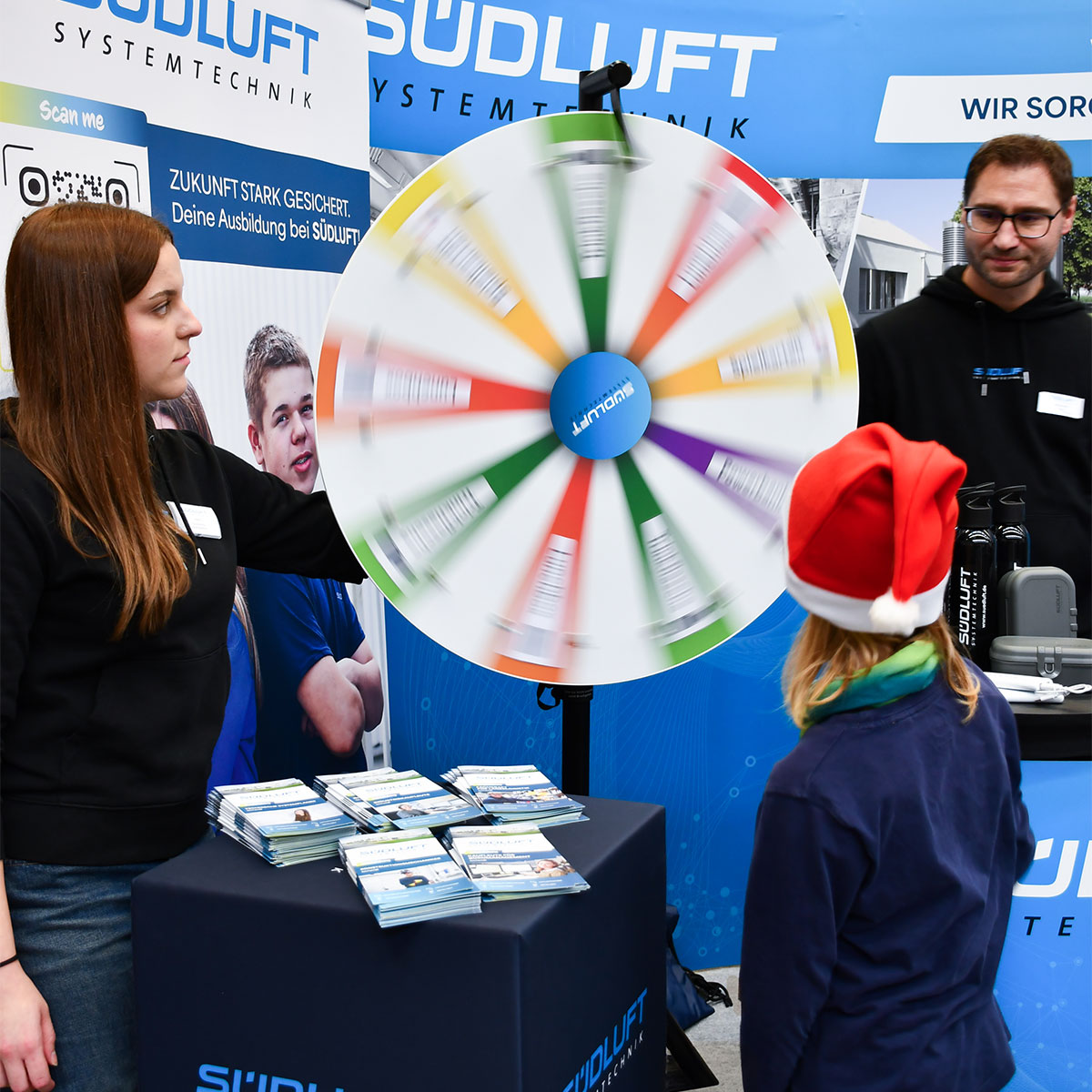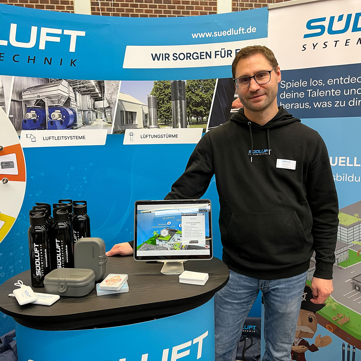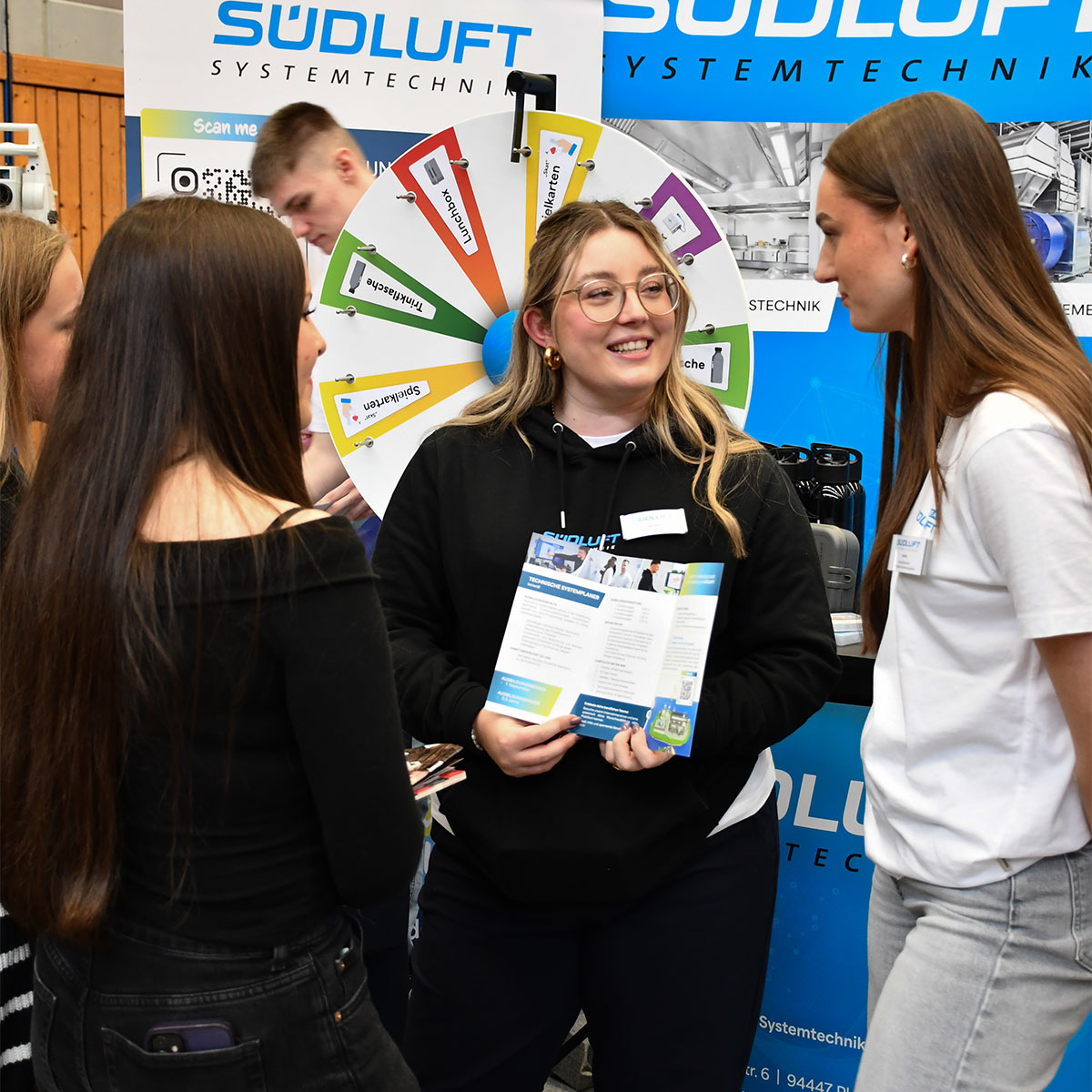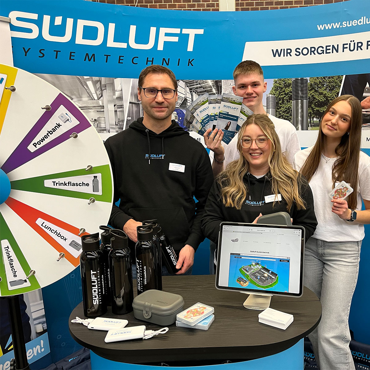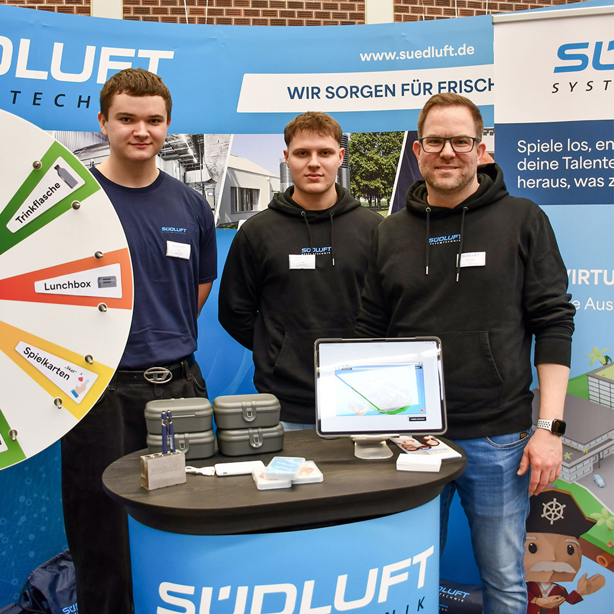 Vor Ort waren unsere Ausbildungsleiterin, Ausbilder und unsere Azubis, um an alle Besucher und Besucherinnen die Ausbildungsberufe für 2026, die Praktikumsmöglichkeiten und - NEU - das duale Studium in Maschinenbau, Bachelor of Engineering (B. Eng.) in unserem Hause SÜDLUFT näherzubringen.