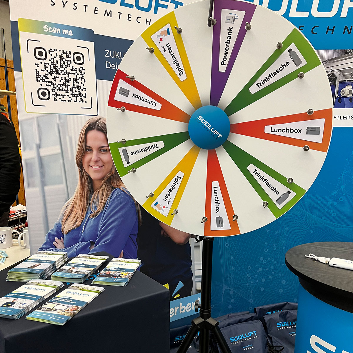 Mit dabei wieder: Unser cooles Glücksrad mit superpraktischen Produkten - Powerbanks, Trinkflaschen, Lunchboxen oder SKAT-Spielkarten!